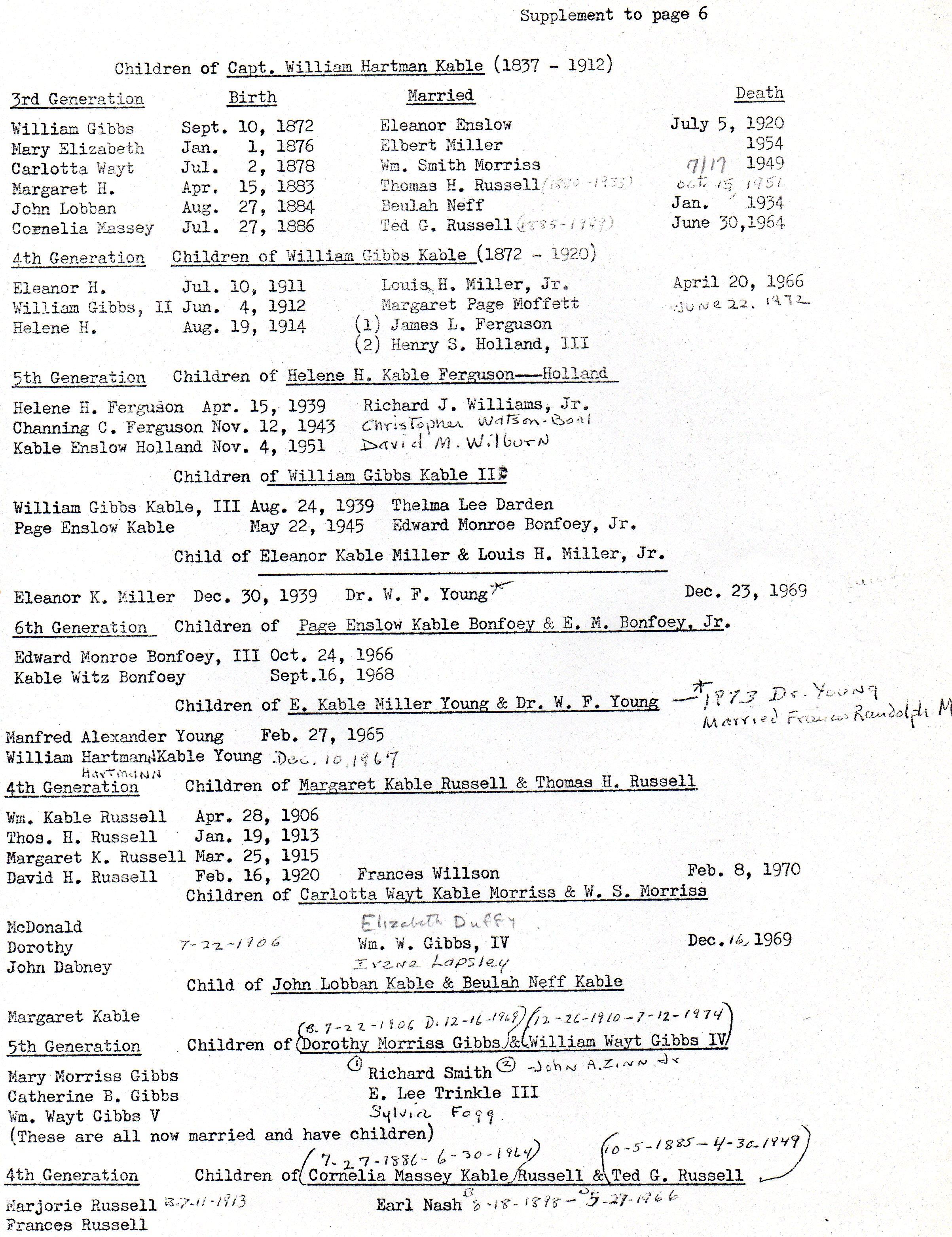 Miscellaneous William Hartman Kable Geneology Family Tree