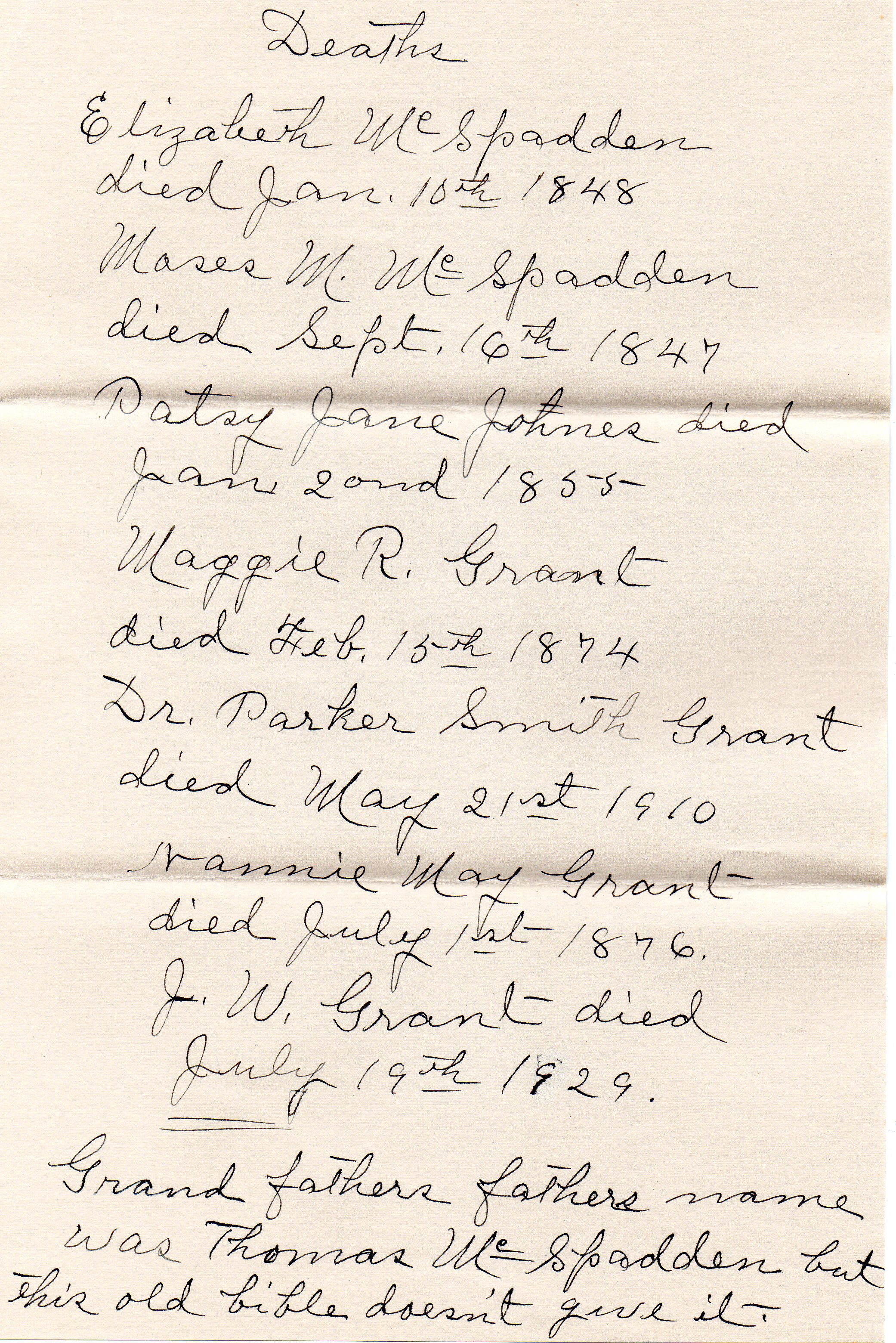 1939 McSpadden geneology Mother of WSM p2