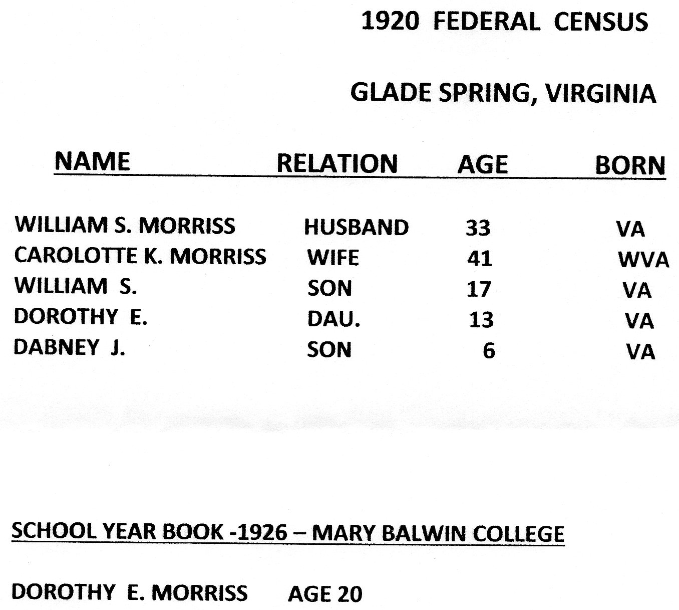 1920 Census WSM, CKM, DM.