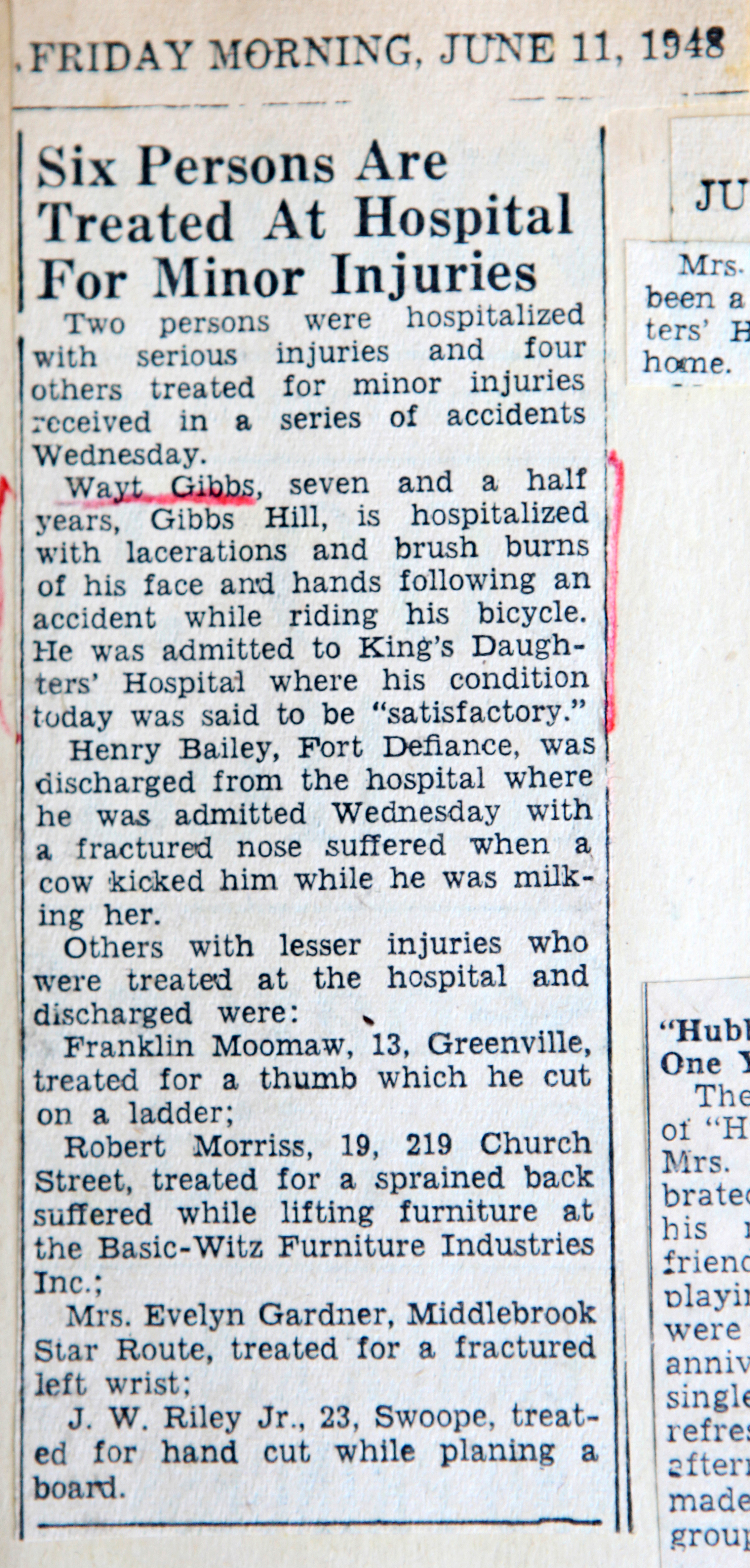 1948 William Wayt Gibbs V injury