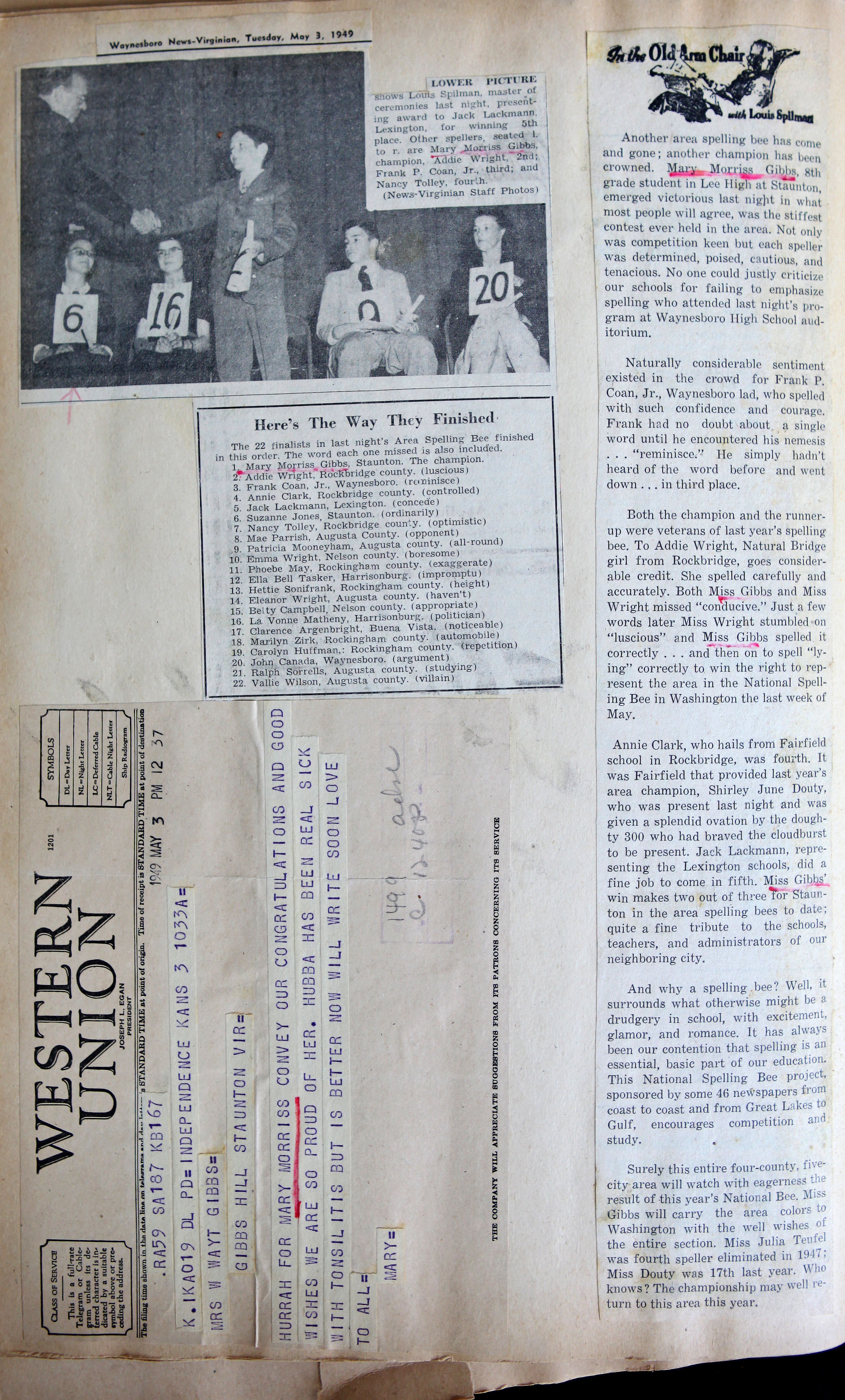 1949 Whole page spelling bee Mary Morriss Gibbs